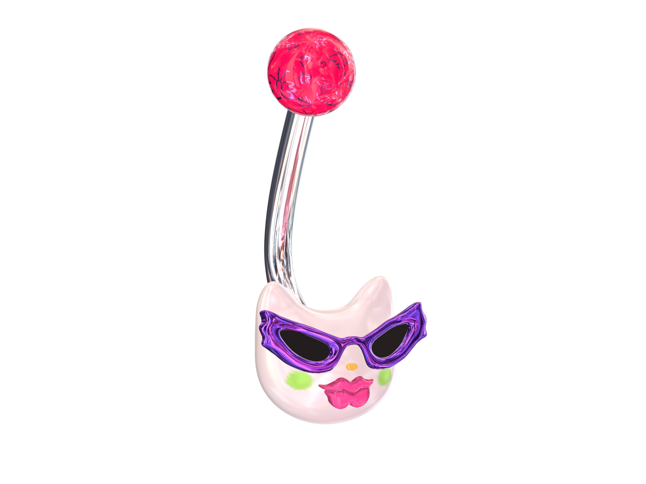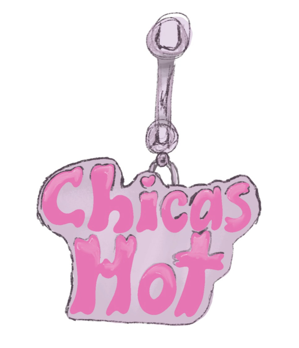 Todo comenzó cuando me pidió hacer algo locochón con su logo, nos reunimos en un café que tenía matcha porque a ella le encanta, me dijo todo lo que la inspiraba y todo acerca de ser una chica hot del 3er mundo. Me pasó referencias y pronto me puse a trabajar. Ella quería cadenas y cosas metalicas y chomadas así que pensé en que los piercings de ombligo tienen todo eso y más (son de chica hot).